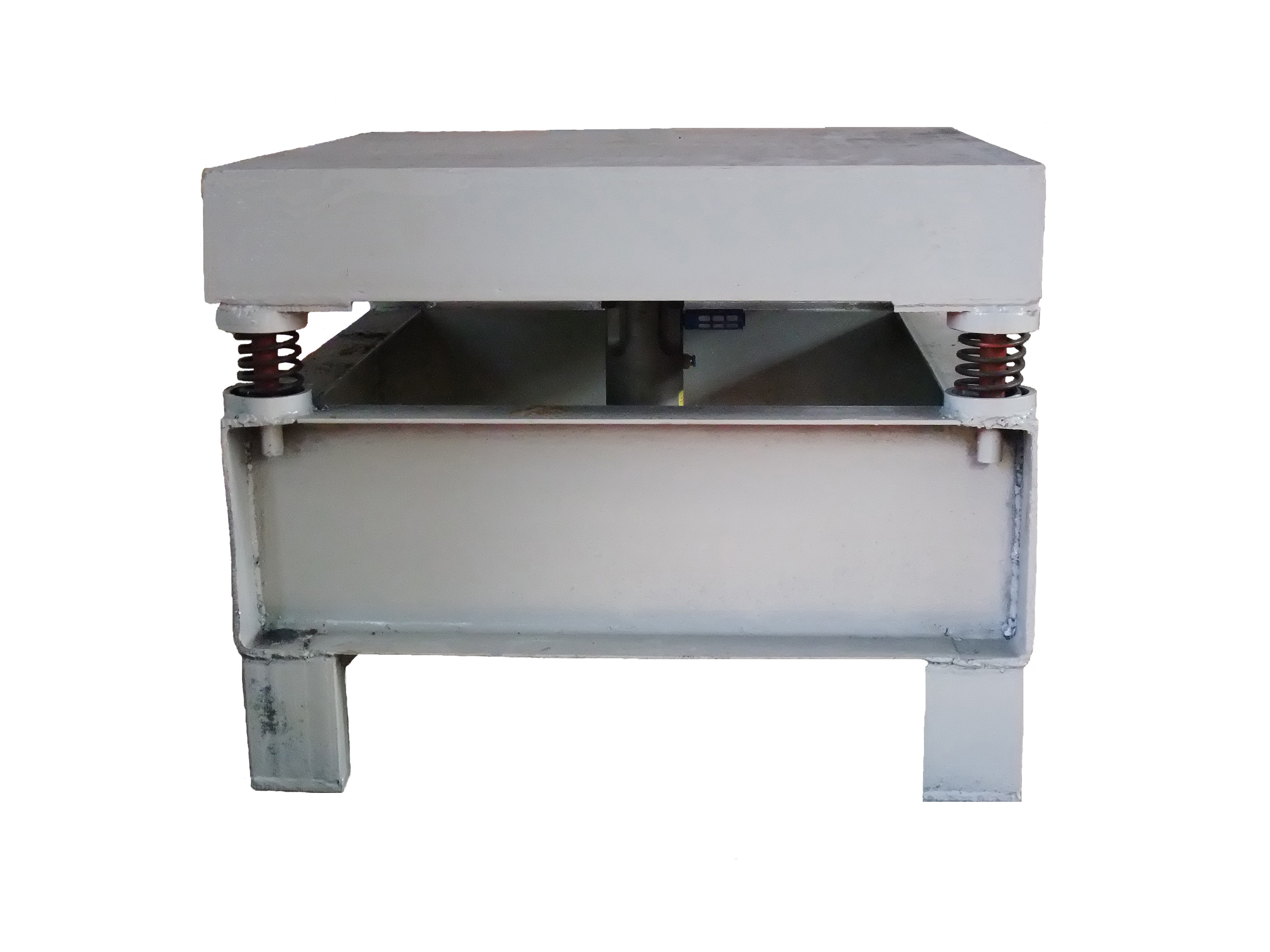 1、設(shè)備主體由12mm鋼板、槽鋼及工字鋼焊接而成,尺寸為1m*2m。采用提高加強(qiáng)筋受力的方式,使設(shè)備承重力達(dá)到1T以上,并確保設(shè)備在高負(fù)載、高頻率的振動(dòng)下不變形不開(kāi)裂。